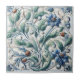 Vintage but Modern blue & white floral ceramic tile with a flat surface and a 3-D look. Fine for showers, backsplashes, coasters, party or wedding favours. The art nouveau style is romantic. Flowers and a twisting vine w/ green leaves.