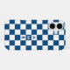 Cool iPhone case features a bold blue and white chequered pattern with a customisable monogram. Add (or delete) 3 initials or numbers in the sidebar to personalise it. The geometric chequerboard pattern is made of rows of alternating white and blue squares. Other case styles and models also available in the sidebar.