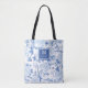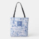 Blue White Chinoiserie Bird Peony Garden Monogram Tote Bag