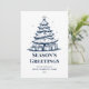 Blue & White Christmas Tree Custom Business Logo Holiday Card