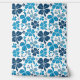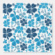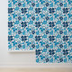 Blue White Clover Shamrock Hand Drawn Pattern Wallpaper. Beautiful and simple 4 leaves clovers in different blue colours on a white background. The design is a digital drawing.