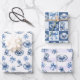 This chinoiserie toile blue and white cowgirl theme wrapping paper set provides three western feminine chic wrapping paper sheets. All have cowboy hats, girlie boots,and bows with blue and white chinoiserie - somewhat like Dutch delft, Mediterranean azulejos tile, or French farmhouse chic. One paper provides the repeat pattern on white, another on pretty lavender purple and white watercolor-like stripes, and the other in an alernatng mosaic blue pattern. Wrap up a great gift for a wedding, bridesmaid, birthday, mother's day, or anniversary, especially if your recipient likes cowgirl and wild, wild west themes.