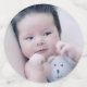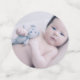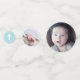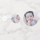 Chic table confetti for a baptism in blue and white, with four of your own photos of you baby boy. Add your baby's initials in blue against white to one side of the smallest confetti, which has a cute cross on the other side.