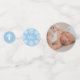 Winter baptism table confetti for a boy with two photos of your baby boy, his initials, blue crosses and snowflakes. Boy baptism table confetti for a blue winter baptism.