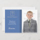 Religious photo card in blue with striped border and white cross. Perfect for thank you cards, announcements or invitations for Communion, Confirmation or Baptism.