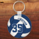 This volleyball keychain features a blue and white volleyball upon which you can customize the player's name and jersey number - by katz_d_zynes