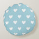 Blue White Cute Simple Heart Pattern Round Cushion