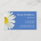 This custom business card features a single white daisy on a blue background with white text. The sample text is for a personal life coach, but you can customise the text for a photographer, landscape designer or any other occupation on the product order page.