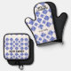 Blue White Diamond Check Oven Mitt & Pot Holder Set