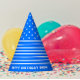 Blue, White Dots, Stripes Party Hat is a for him party accessory just perfect for a blue, polka dots and stripes theme party.