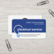 A blue and white layer is accentuated by a creative light bulb design. The bulb design houses the oversize business name with the contact details at the base of the bulb. Over at the top corner is your prestigious name and job title.