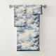 Blue and white English countryside toile bath towel set. Navy blue trim. Thanks for looking.