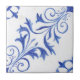 Blue White Farmhouse Rustic Scroll n Leaf Pattern Tile