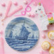 Blue and white faux porcelain Summer ship delft blue chinoiserie blue willow style pattern paper plates.