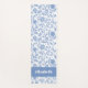 Blue White Floral Botanical Pattern Custom Name Yoga Mat