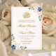 Blue & White Floral Gold Design Islamic Wedding Invitation