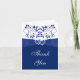 This elegant and romantic royal blue and white floral wedding thank you card has a PRINTED satin look ribbon and bow, with a pair of PRINTED diamond jewels and FAUX simulated glitter joined hearts on it that matches the wedding invitation shown below. The text is all customisable. If there are any additional matching items you require, or of you need help making your card, please email your request to niteowlstudio@gmail.com.