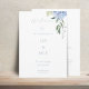 Chic and elegant blue hydrangea wedding program enclosure card, featuring a welcome message, full program details and a custom 'thank you' message. The design features a set of chic dusty blue font against a white background. Stylish, romantic, elegant with youthful undertones, this design adds just that special something to your big day. Personalise this one-of-a-kind design to make it yours.
