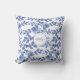 Blue White Floral Leaf Pattern Monogram Cushion