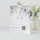 Blue & White Floral Modern Wedding QR Code RSVP Card