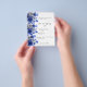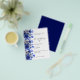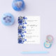 A white background, decorated with blue and white flowers. Personalise and add your names and details.