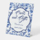 A wedding tabletop cards and gifts sign featuring a blue floral toile design.