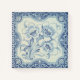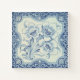 This is a blue floral vintage watercolor drawing with a decorative border around the edges on a white background. Victorian majolica Antique tile.