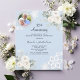 For an elegant and romantic 25th wedding anniversary. A light blue background decorated with white florals, roses and white lace. Personalise and add your photo, names and details.