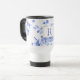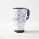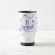 traditional blue white flower china pattern travel mug side initial. On trend yet timeless in modern homes and country kitchens. blue white flower china with initial monogramme text which is customisable