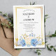 Blue White Flowers Gold Frame Elegant Wedding Invitation