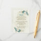 Beautiful romantic wedding reception details enclosure card featuring blue and white flowers and some pretty green leaves .