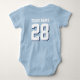 Cute football jersey bodysuit for baby. Mum and dad love sports. It's only natural the baby should too. Cute baby bodysuit in royal blue and white. You can customise the name and player number on the front and back of the jersey. Not just for football fans. Any type of sports fan will appreciate this design. Baseball, basketball, soccer, ice hockey and more.