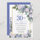 Blue White Gold Floral 30th Birthday Dinner Invitation