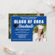 This modern blue and white custom senior photograph graduation party invitation features classy white typography of your college name for the class of 2025. Customise with your graduating year under the chic handwritten script and black grad cap for great invites. Add your party or ceremony details next to your graduate photo.