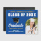 This modern blue and white custom senior graduate photo magnet features your graduation photograph next to classy gold typography of your college name for the class of 2025. Customise with your graduating year under the chic handwritten script and black grad cap for a great grad announcement magnetic card.