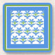 A set of stylish, cork-backed Coasters or Table Mats, with an Art Nouveau pattern in bright blue, green and white, from a handpainted design by Judy Adamson.