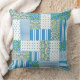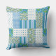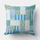 A pretty Cushion or Throw Pillow, with a country style Faux Patchwork of floral, polka dot, striped and check gingham patterns in blue, green and white: part of the Posh & Painterly 'Morning Glory' collection. This pattern will fit all pillow sizes.