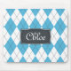 Preppy modern girly colourful cute argyle pattern in blue, white and grey with a customisable nameplate for you to personalise your name. Trendy vector diamond geometric retro pattern.