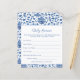 Baby Shower game "Baby Guesses" [write down predictions for baby's date of birth, height and weight etc] in an elegant blue and white Chinoiserie theme. All of the text is fully customisable to your needs.