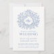 Blue and white hand-drawn growing spring leaf botanical art wedding invitations. Simple leaf design circling your own monogram initials design. In pretty shades of classic blue and crisp white. Other colours and matching items are available. © Original leaf drawing and design by Sarah Trett for www.mylittleedenweddings.com on Zazzle.