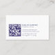 The elegant, simple, and minimalistic immigration attorney business card design features personalised blue and white typography on a dark blue and white background. QR Code.