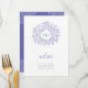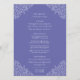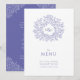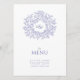 purple blue and white wedding dinner menu. Edit this 4 course menu with your own meal option wording. Simple yet modern hand drawn leaves and monogram design. © Original hand botanical drawing and design by Sarah Trett for www.mylittleedenweddings.com exclusively on zazzle.