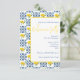 This blue, white, and yellow lemon Mediterranean tile inspired invitation is perfect for setting the tone of your Mediterranean themed event!
