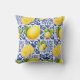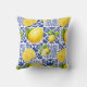 Blue White Lemon Tile Pattern Mediterranean Citrus Cushion