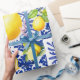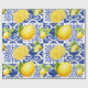 Blue White Lemon Tile Pattern Mediterranean Citrus Wrapping Paper