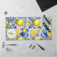 Blue White Lemon Tile Pattern Monogram Name Citrus Desk Mat