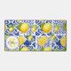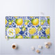 This blue and white lemon tile design brings a fresh, timeless aesthetic to any space. Inspired by classic Mediterranean and European tile patterns, it features vibrant yellow lemons layered over intricate blue floral motifs for a bright yet balanced look. The citrus elements add warmth and character, while the traditional color palette keeps the design elegant. This lemon inspired design is perfect with the addition of the customizable name and monogram.