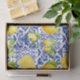 This blue and white lemon tile design brings a fresh, timeless aesthetic to any space. Inspired by classic Mediterranean and European tile patterns, it features vibrant yellow lemons layered over intricate blue floral motifs for a bright yet balanced look. The citrus elements add warmth and character, while the traditional color palette keeps the design elegant. This lemon inspired design is perfect with the addition of the customizable name and monogram.