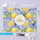 Blue White Lemon Tile Pattern Monogram Name Citrus Tissue Paper