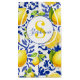 This blue and white lemon tile design brings a fresh, timeless aesthetic to any space. Inspired by classic Mediterranean and European tile patterns, it features vibrant yellow lemons layered over intricate blue floral motifs for a bright yet balanced look. The citrus elements add warmth and character, while the traditional color palette keeps the design elegant. This lemon inspired design is perfect with the addition of the customizable name and monogram.